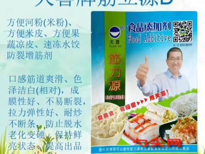 ★功能作用:[筋力源D型]适用于方便河粉、方便肠粉、方便米皮、方便米粉(部分地区河粉也称米粉,本“米粉”是指方便河粉)、免洗凉皮、免洗果蔬凉皮、方便凉皮(免洗面筋法)、果蔬凉皮、蔬菜凉皮、水果凉皮、速冻水饺、速冻馄饨、方便面等,还适用于大米和淀粉混合制作的汽蒸米线、自熟米线、手工米线等米线以及生浆法米皮、烫浆法米皮、手工河粉、广东肠粉等方便米面制品、冷冻米面制品,起到口感筋道爽滑、色泽洁白(相对),成膜性好、不易断裂,拉力弹性好、耐炒不断条,防止脱水老化变硬、保持鲜亮状态、提高出品率的作用。