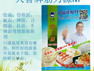 ★温馨提示:1.本品含食用纯碱(碳酸钠),生鲜湿面存放3个小时以上就会变色,可以添加0.06%富马酸(护色剂)进行解决。2.本品不含防腐剂,没有防腐保鲜作用,生鲜湿面保鲜可以添加0.2%美久亭F,同时采用食用酒精杀菌消毒。生鲜湿面必须放冷柜8-15℃保鲜存放。3.生湿面制品(食品分类号:06.03.02.01)不包括采用杂粮(比如:玉米面、荞麦面等)面粉制作的面条、豆萁等杂粮制品,生产加工杂粮制品(食品分类号:06.04.02)可以使用筋力源W型。4.加工生产黄色生湿面制品可以添加0.2-0.3%七彩滴1号,直接加入和面水中即可。5.夏天和好的面团容易发酵,因此弛面时必须放在低温10-15℃冷柜中。6.卤制板面用牛肉时添加0.5-0.8%味达蕾86号,具有浓郁卤牛肉口感、香味持久。