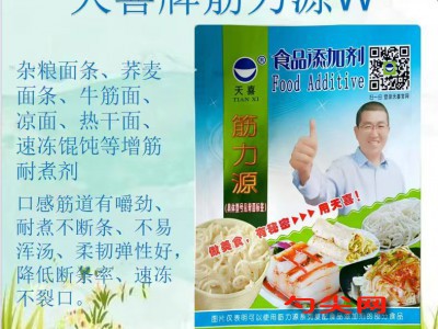 ★功能作用:[筋力源W型]加工制作的杂粮面条、玉米面条、荞麦面条、莜麦面条、饸饹面、牛筋面、凉面、热干面、方便面、炸酱面、干吃面、油炸伊面、杂粮豆萁、速冻水饺、速冻馄饨、自熟米面条、杂粮煎饼等杂粮制品(包括杂粮干面制品和杂粮湿面制品)、方便米面制品以及冷冻米面制品口感筋道有嚼劲、耐煮不断条、不易浑汤、柔韧弹性好,降低断条率、速冻不裂口。[筋力源W型]还可用于玉米杂粮鲜面条、莜面鱼鱼、蒸面条、辣条、荞麦杂粮面条、炒面条等。