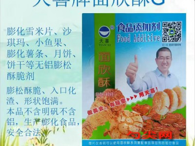 ★功能作用:采用〔面欣酥G型〕加工制作的膨化雪米片、沙琪玛、小鱼果、膨化薯条、提糖月饼(京式、广式、潮式、港式)、酥皮月饼(苏式)、钙奶饼干、酥性饼干、大米小小酥(膨化食品)等膨化食品、发酵面制品、裹粉、油炸面制品、焙烤食品膨松酥脆、入口化渣、形状饱满。〔面欣酥G型〕不含明矾不含铝,生产膨化食品,安全合法。〔面欣酥G型〕还可用于白面江米条、木糖醇沙琪玛、黑芝麻酥月饼、木糖醇月饼、广式月饼等。