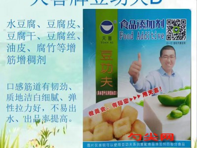★温馨提示:1.千页豆腐、素鸡、人造肉等大豆蛋白制品可以使用豆功夫C型。2.本品没有防腐保鲜作用,豆制品防腐保鲜可以添加0.3%美久亭B。