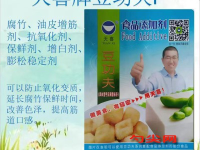 ★功能作用:[豆功夫F型]用于油皮、腐竹生产,可以防止腐竹氧化变质,延长腐竹保鲜时间,改善腐竹色泽,提高腐竹筋道口感。