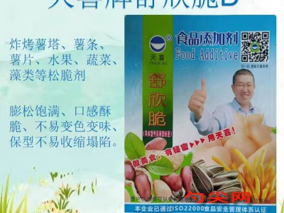 ★功能作用:采用〔舒欣脆D型 〕浸泡后油炸焙烤的薯塔、薯条、薯片、地瓜条等水果制品、蔬菜制品、食用菌制品、藻类制品等膨松饱满、口感酥脆、不易变色变味、保型不易收缩塌陷。食用菌制品、藻类制品等浸泡腌制后口感脆嫩、不易变色变味、鲜亮饱满。〔舒欣脆D型〕还可用于辣椒酥、香辣酥、山楂糖雪球、炸薯片、炸薯条等。